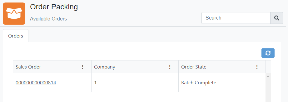 As you enter the Order Packing module you’ll see a list of available Sales Orders that have been Picked and Completed in the Order Picking Module and are ready to be Packed. If the Sales Order has not been Picked and Completed in Order Picking it will not be available in Packing.